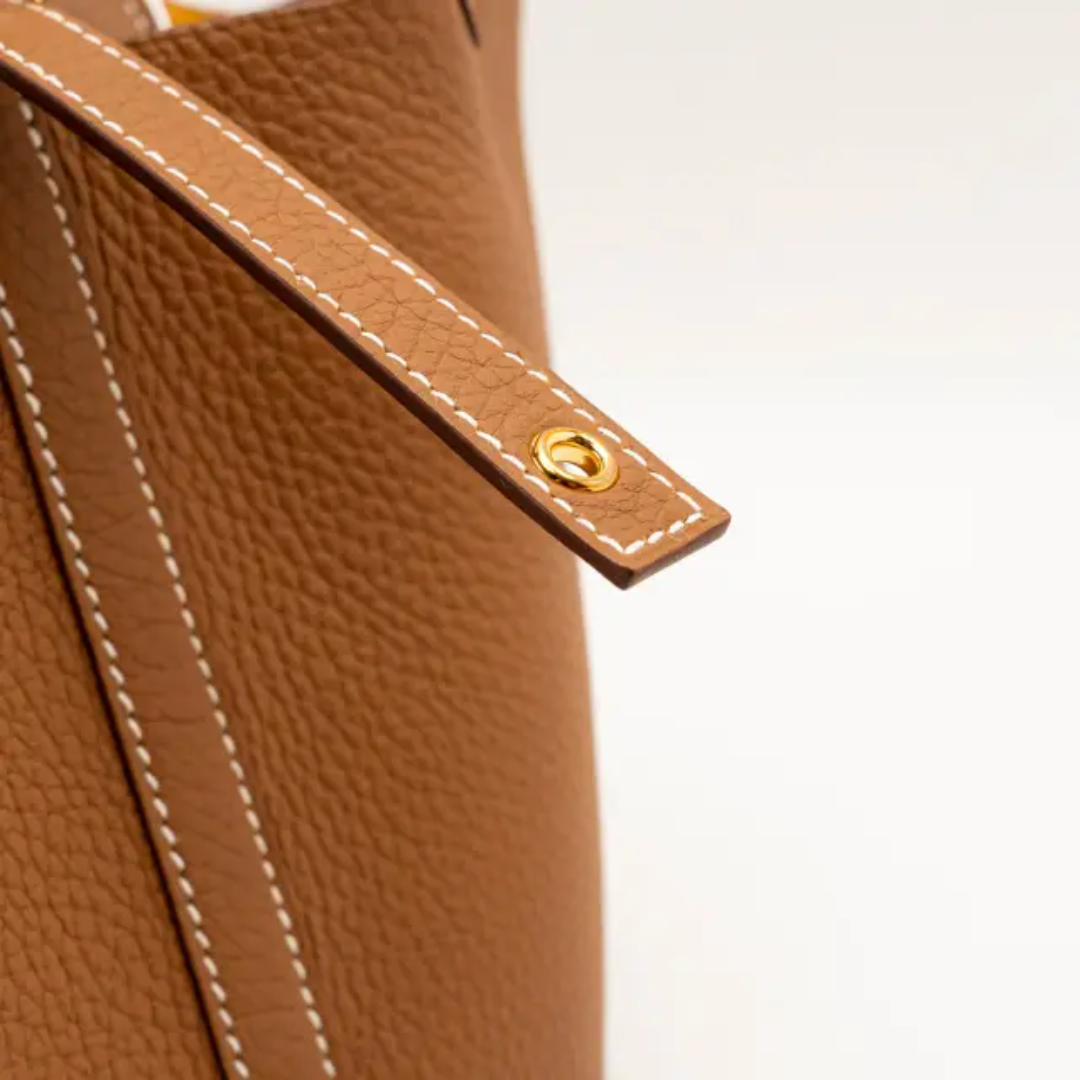 This Hermès Picotin in clemence Leather is as functional as it is stylish. Accented with polished hardware, this beautiful handle bag features a unique one-piece closing design with a clip and secured by a belt strap. The top handles open to a matching interior and is accompanied with four protective base studs.