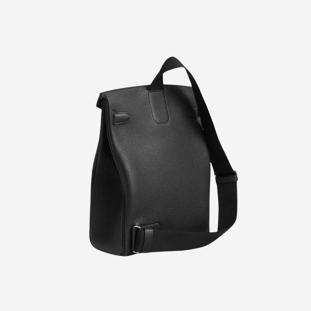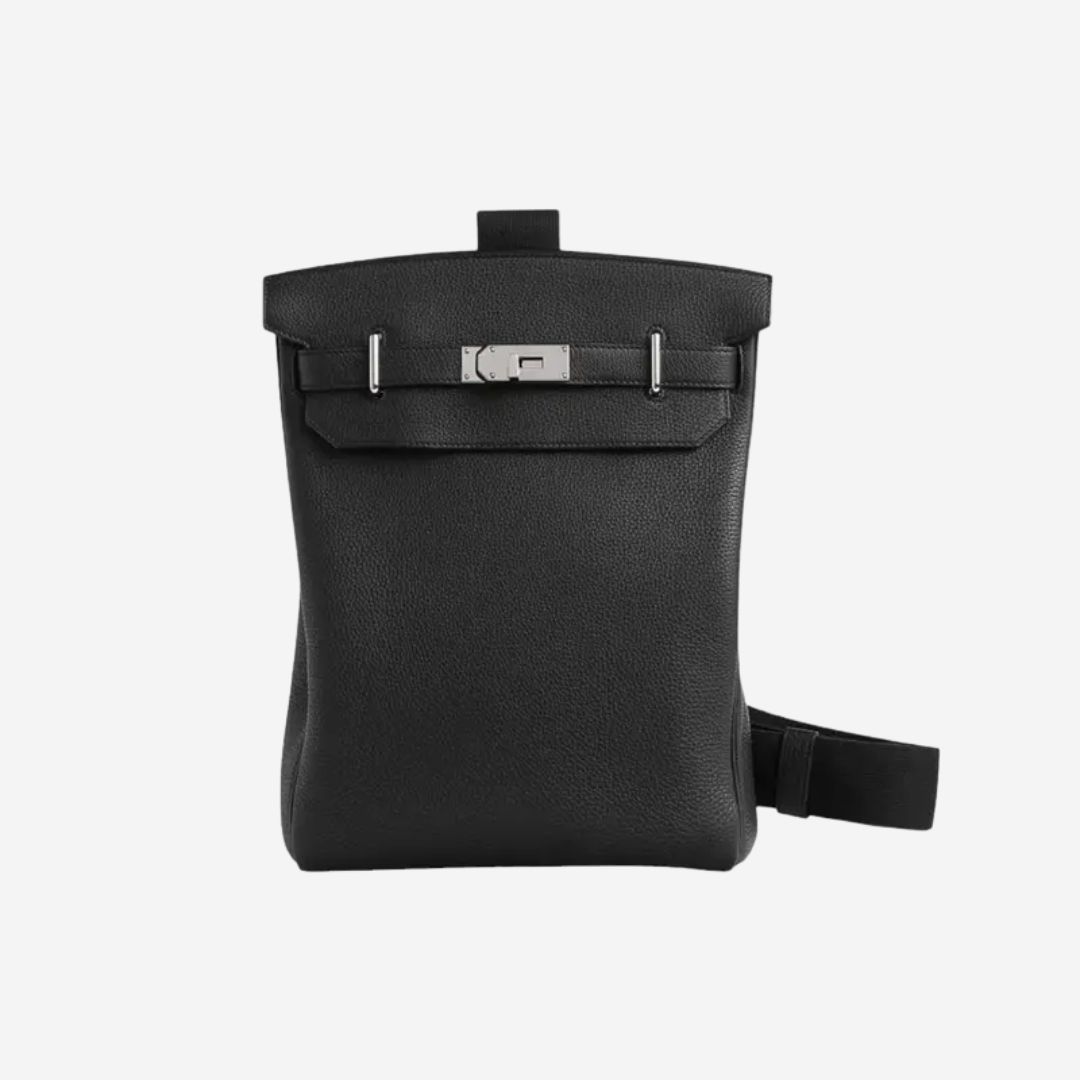 This HAC A Dos GM Backpack is in Togo leather with palladium hardware and has tonal stitching, two straps with front toggle closure, and an adjustable shoulder strap. The interior has an open pocket on the rear wall.