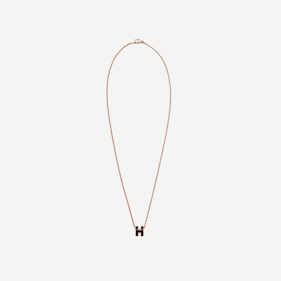 Pendant in lacquered metal with rose gold-plated hardware. The curves of the iconic “pop H” model are revisited in this version.