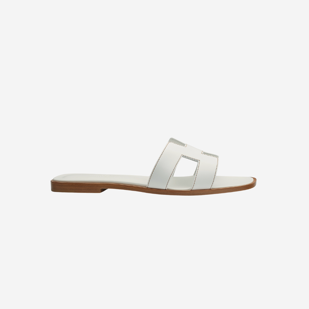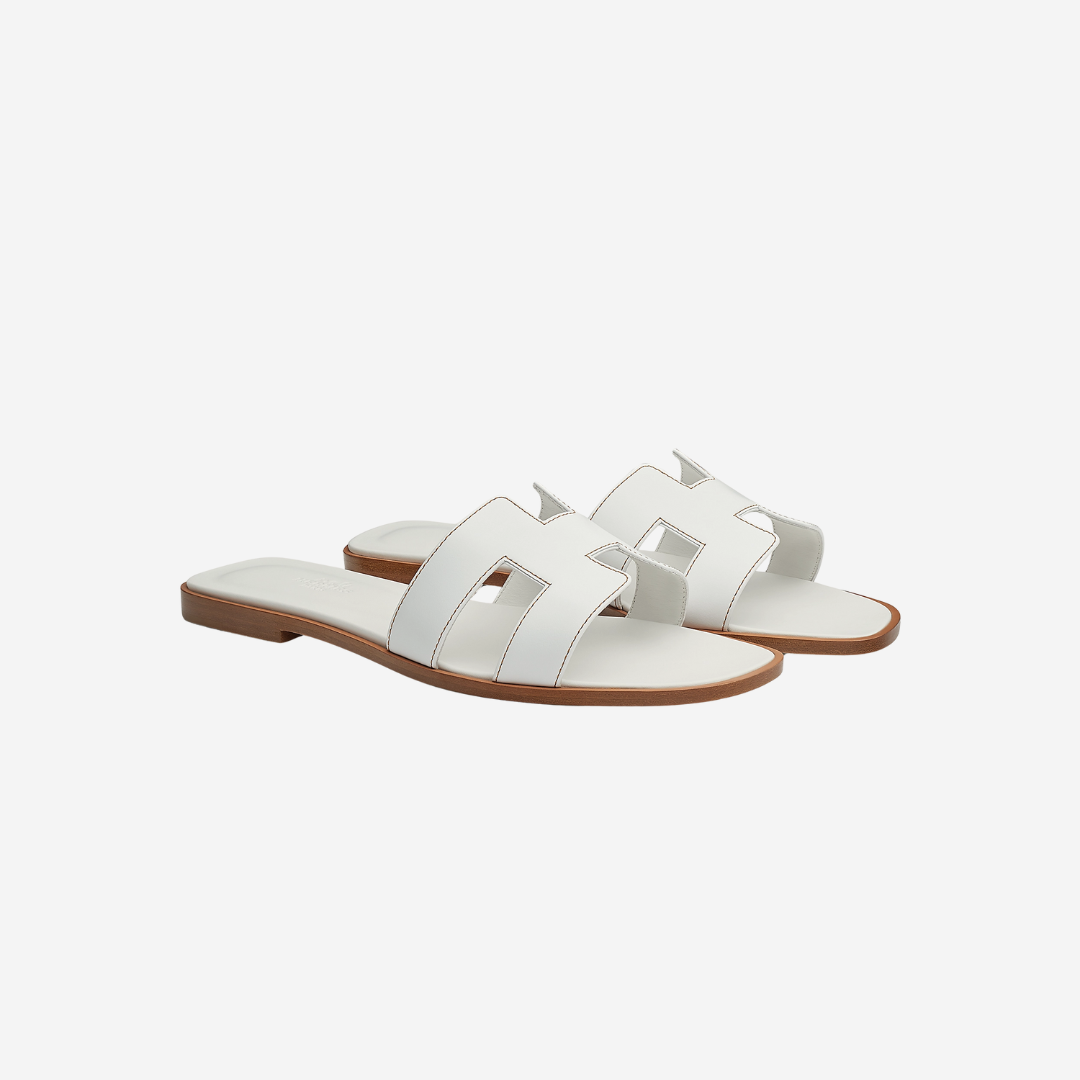 A timeless summer essential, these Oran sandals are crafted in smooth white calfskin with the iconic “H” cut-out design. Sleek, versatile, and effortlessly elegant, perfect for refined, everyday wear.
