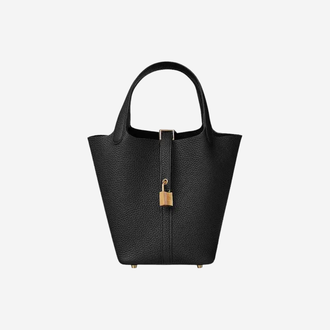 This Hermès Picotin in classic Leather is as functional as it is stylish. Accented with polished hardware, this beautiful handle bag features a unique one-piece closing design with a clip and secured by a belt strap. The top handles open to a matching interior and is accompanied with four protective base studs.