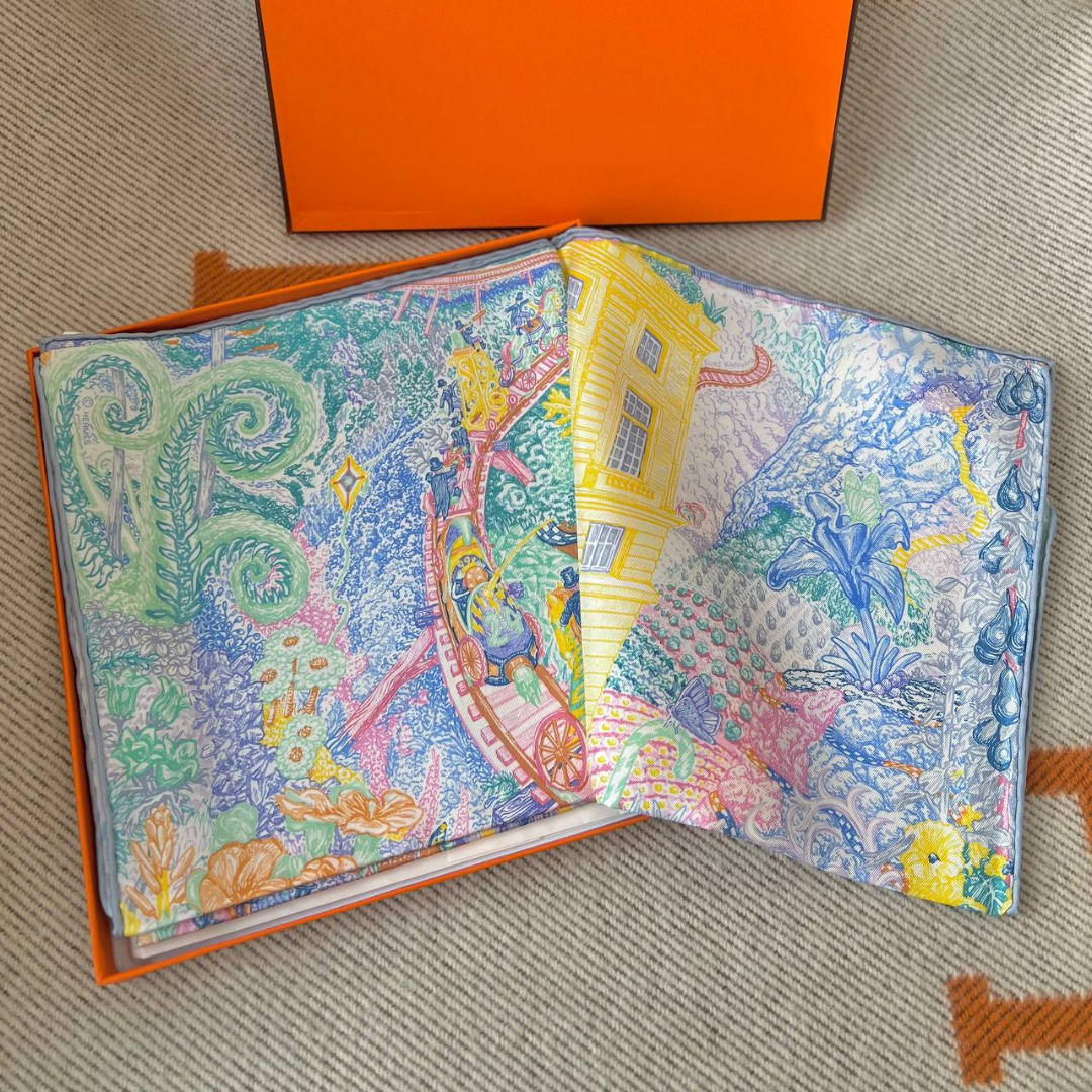 Les Folies Du Faubourg 90 Silk Scarf Rose _ Bleu _ Vert