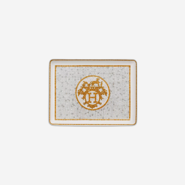 $843.00(0)Change tray in porcelain with velvet goatskin base. Decorative mosaics are screen-printed and applied by hand using platinum tiles. -